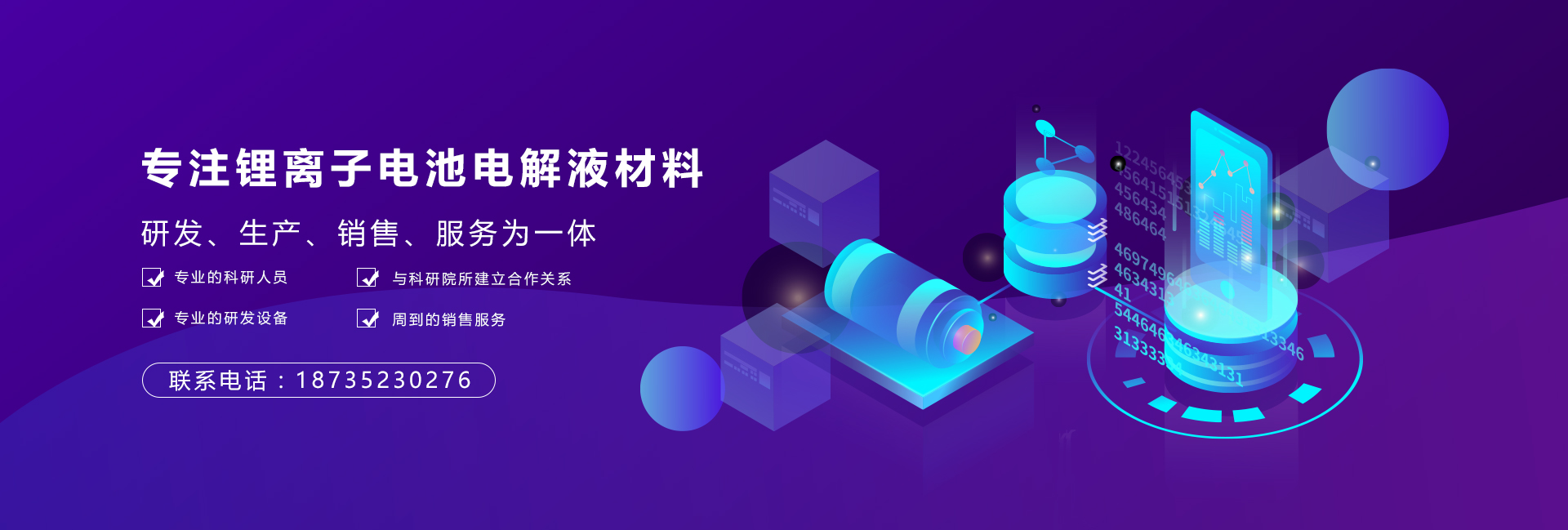 大同新成新材料股份有限公司鋰電材料分公司隸屬于新成集團,是一家集鋰離子電池電解液材料研發(fā)、生產(chǎn)、銷售、服務(wù)為一體的高新技術(shù)企業(yè),坐落在晉、冀、蒙三省交界素有“中國煤都”美稱的大同市新榮經(jīng)濟技術(shù)開發(fā)區(qū),地址位置好,交通便利。公司致力于動力電池電解液的開發(fā),目前與高等院校、科研院所建立了長期、穩(wěn)定的合作關(guān)系,團隊骨干從事鋰電材料行業(yè)多年,具有豐富經(jīng)驗的技術(shù)人員,在配方開發(fā)、生產(chǎn)管理、過程控制、質(zhì)量檢測方面形成了完整的管理體系,開發(fā)出的產(chǎn)品可以滿足客戶在不同領(lǐng)域的需求。